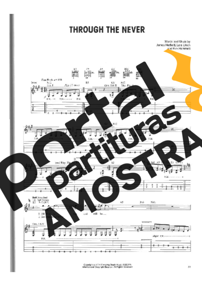 Partitura da música Through The Never de Metallica transcrita especialmente para Guitarra em formato PDF.