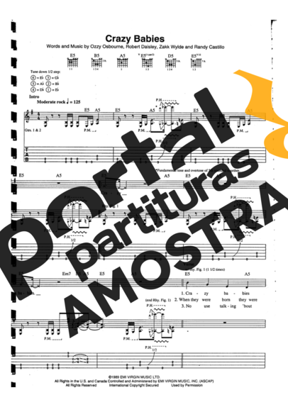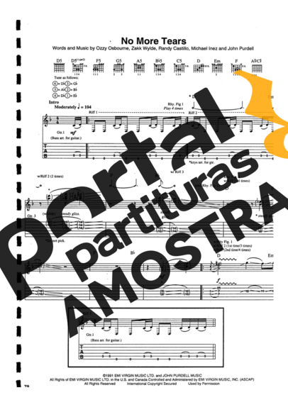 Partitura da música No More Tears de Ozzy Osbourne transcrita especialmente para Guitarra em formato PDF.