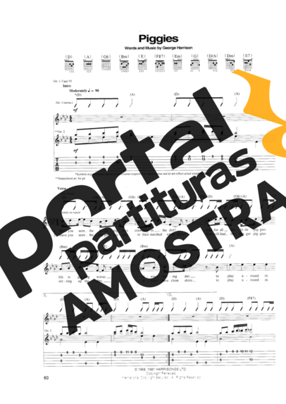 Partitura da música Piggies de The Beatles transcrita especialmente para Guitarra em formato PDF.