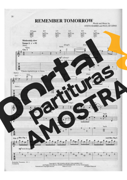 Partitura da música Rising Force de Yngwie Malmsteen transcrita especialmente para Guitarra em formato PDF.