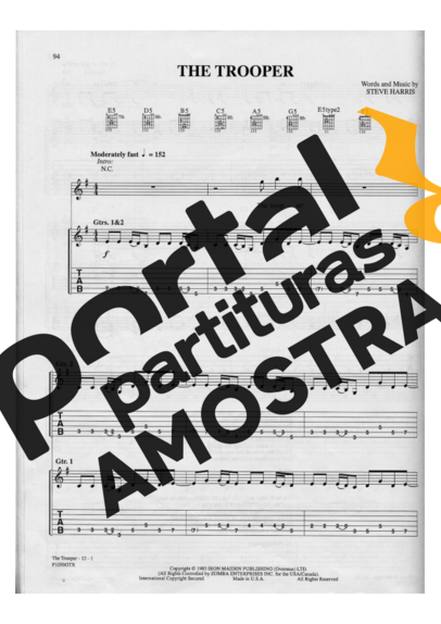 Partitura da música The Trooper de Iron Maiden transcrita especialmente para Guitarra em formato PDF.