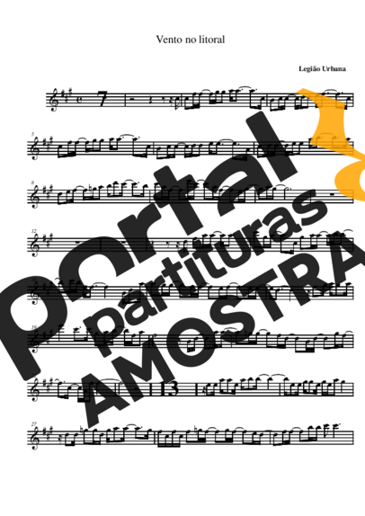 Partitura da música Vento no Litoral de Legião Urbana transcrita especialmente para Saxofone Alto (Eb) em formato PDF.
