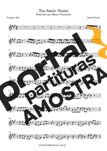 Partitura da música Teu Santo Nome de Gabriela Rocha transcrita especialmente para Trompete em formato PDF.