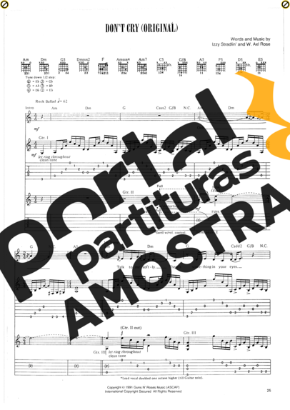 Partitura da música Dont Cry de Guns N Roses transcrita especialmente para Guitarra em formato PDF.