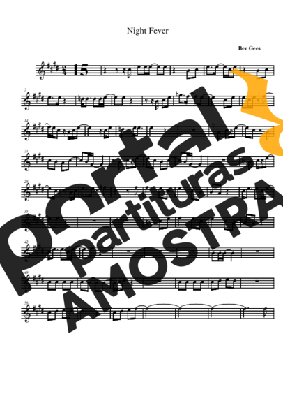 Partitura da música Night Fever de Bee Gees transcrita especialmente para Saxofone Alto (Eb) em formato PDF.