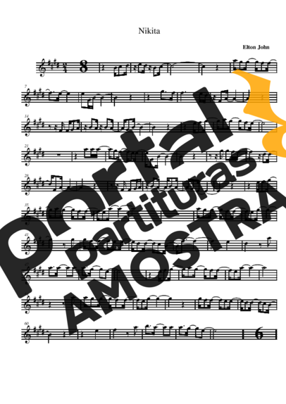 Partitura da música Nikita de Elton John transcrita especialmente para Saxofone Alto (Eb) em formato PDF.
