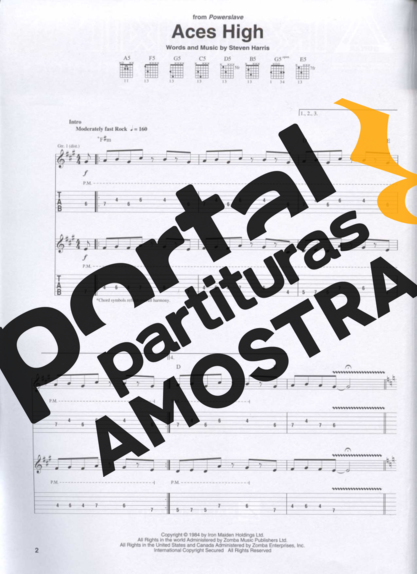 Partitura da música Aces High de Iron Maiden transcrita especialmente para Guitarra em formato PDF.