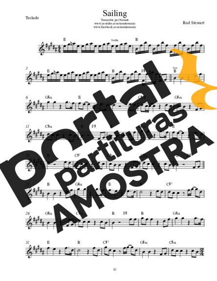 Partitura da música Sailing de Rod Stewart transcrita especialmente para Teclado em formato PDF.