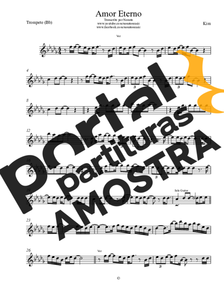 Partitura da música O Amor Eterno de Kim transcrita especialmente para Trompete em formato PDF.