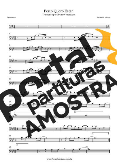 Partitura da música Perto Quero Estar de Trazendo a Arca transcrita especialmente para Trombone em formato PDF.