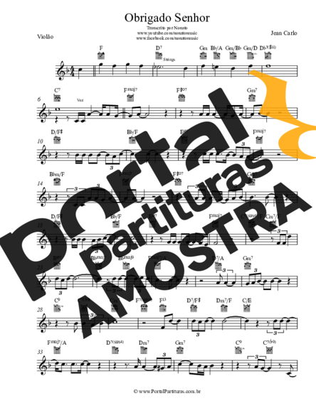 Partitura da música Obrigado Senhor de Jean Carlo transcrita especialmente para Violão em formato PDF.