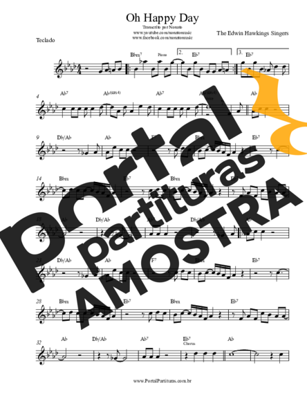 Partitura da música Oh Happy Day de The Edwin Hawkins Singers transcrita especialmente para Teclado em formato PDF.