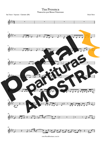 Partitura da música Tua Presença de Paulo Neto transcrita especialmente para Saxofone Tenor Soprano (Bb) em formato PDF.