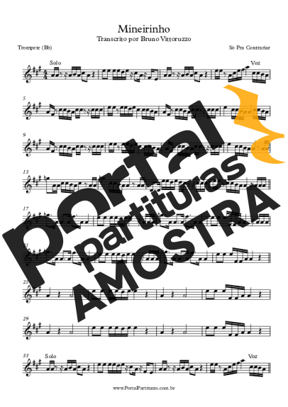 Partitura da música Mineirinho de Só Pra Contrariar transcrita especialmente para Trompete em formato PDF.