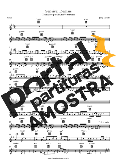 Partitura da música Sensível Demais de Jorge Vercillo transcrita especialmente para Violão em formato PDF.