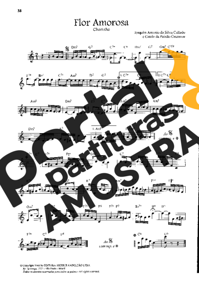 Partitura da música Flor Amorosa de Joaquim Antonio da Silva transcrita especialmente para Violino em formato PDF.