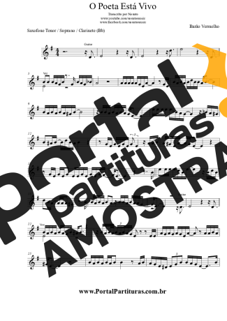 Partitura da música O Poeta Está Vivo de Barão Vermelho transcrita especialmente para Clarinete (Bb) em formato PDF.