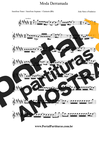 Partitura da música Moda Derramada de João Neto e Frederico transcrita especialmente para Clarinete (Bb) em formato PDF.