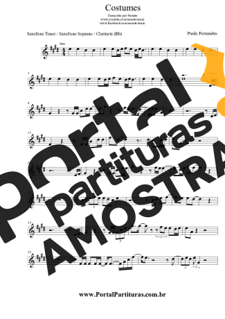 Partitura da música Costumes de Paula Fernandes transcrita especialmente para Clarinete (Bb) em formato PDF.