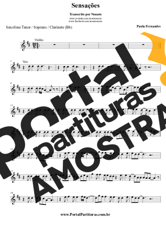 Partitura da música Sensações de Paula Fernandes transcrita especialmente para Clarinete (Bb) em formato PDF.