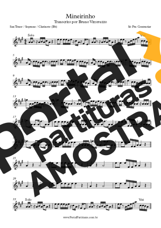 Partitura da música Mineirinho de Só Pra Contrariar transcrita especialmente para Clarinete (Bb) em formato PDF.