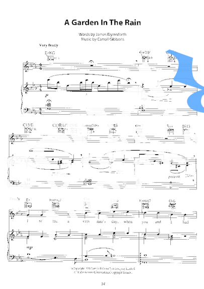 Partitura da música A Garden In The Rain de Sarah Vaughan transcrita especialmente para Piano em formato PDF.