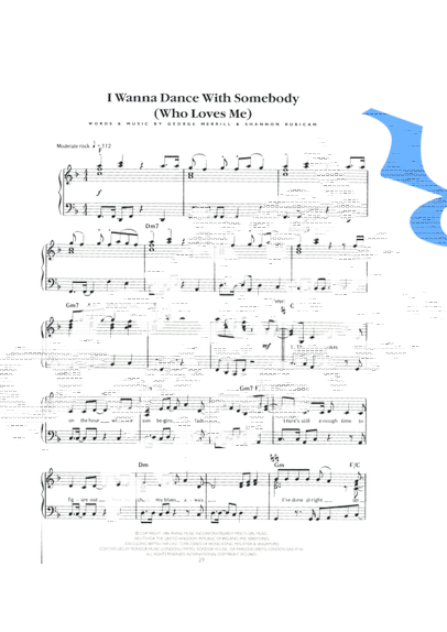 Partitura da música I Wanna Dance With Somebody de Whitney Houston transcrita especialmente para Piano em formato PDF.