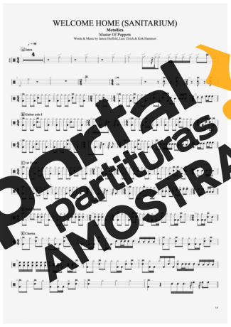 Partitura da música Welcome Home (Sanitarium) de Metallica transcrita especialmente para Bateria em formato PDF.