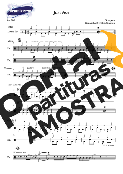 Partitura da música Jeremy de Pearl Jam transcrita especialmente para Bateria em formato PDF.