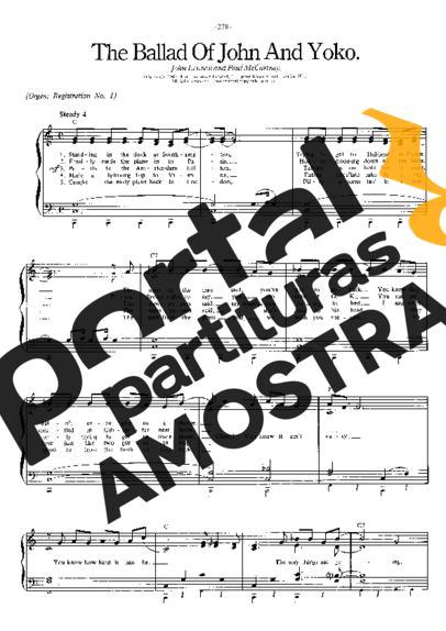 Partitura da música The Ballad Of John And Yoko de The Beatles transcrita especialmente para Piano em formato PDF.