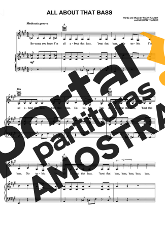 Partitura da música All About That Bass de Meghan Trainor transcrita especialmente para Piano em formato PDF.