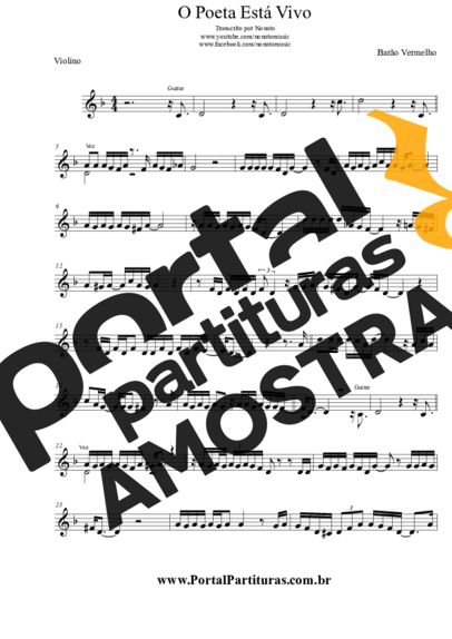 Partitura da música O Poeta Está Vivo de Barão Vermelho transcrita especialmente para Violino em formato PDF.