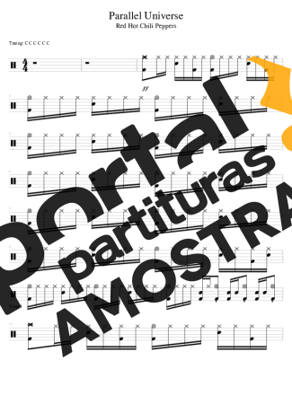 Partitura da música Parallel Universe de Red Hot Chili Peppers transcrita especialmente para Bateria em formato PDF.