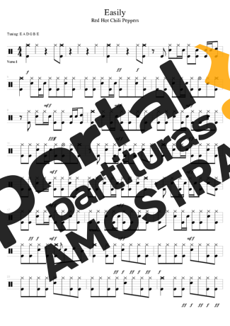 Partitura da música Easily de Red Hot Chili Peppers transcrita especialmente para Bateria em formato PDF.