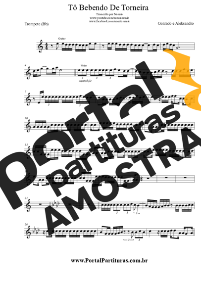 Partitura da música No Rancho Fundo de Chitãozinho e Xororó transcrita especialmente para Trompete em formato PDF.