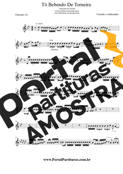 Partitura da música Tô Bebendo De Torneira de Conrado e Aleksandro transcrita especialmente para Clarinete (C) em formato PDF.