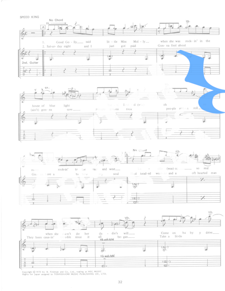 Partitura da música Speed King de Deep Purple transcrita especialmente para Guitarra em formato PDF.