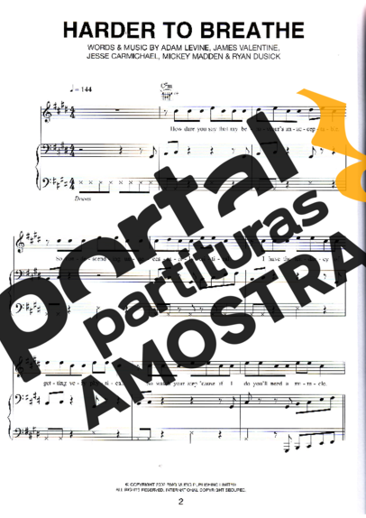 Partitura da música Harder To Breathe de Maroon 5 transcrita especialmente para Piano em formato PDF.