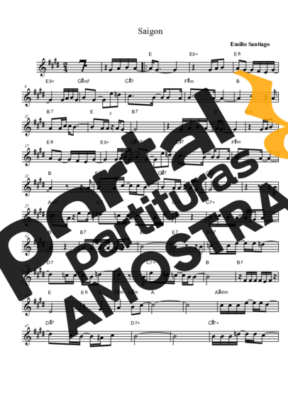 Partitura da música Saigon de Emílio Santiago transcrita especialmente para Saxofone Tenor Soprano (Bb) em formato PDF.