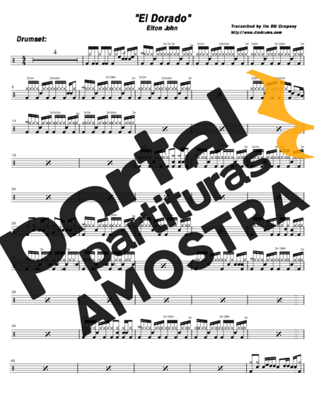 Partitura da música El Dorado de Elton John transcrita especialmente para Bateria em formato PDF.