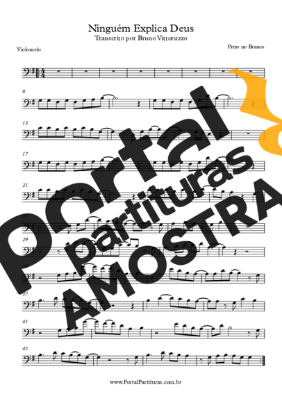 Partitura da música Ninguém Explica Deus de Preto no Branco transcrita especialmente para Violoncelo em formato PDF.