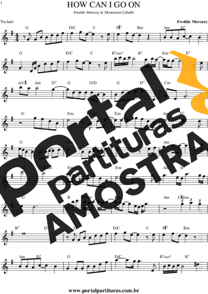 Partitura da música How Can I Go On de Freddie Mercury & Montserrat Caballé transcrita especialmente para Teclado em formato PDF.