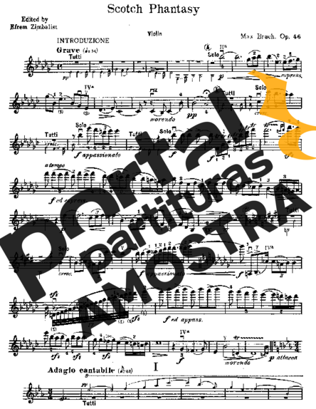 Partitura da música Scottish Fantasy de Bruch transcrita especialmente para Violino em formato PDF.