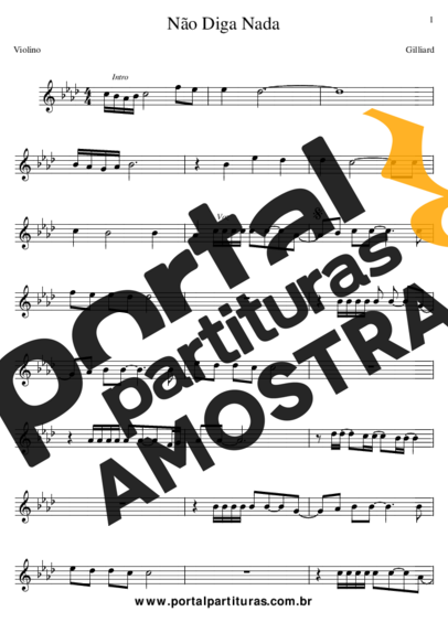 Partitura da música Não Diga Nada de Gilliard transcrita especialmente para Violino em formato PDF.