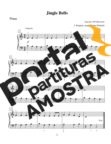 Partitura da música Jingle Bells de Christmas Songs (Temas Natalinos) transcrita especialmente para Piano em formato PDF.