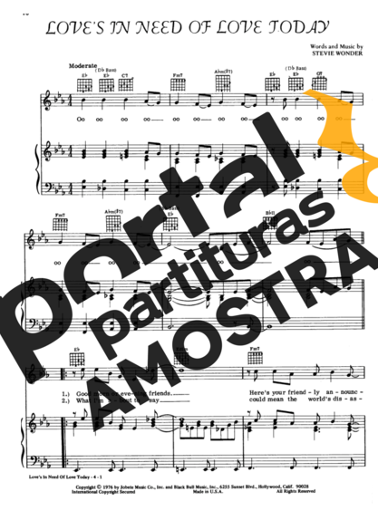 Partitura da música Loves In Need of Love Today de Stevie Wonder transcrita especialmente para Piano em formato PDF.