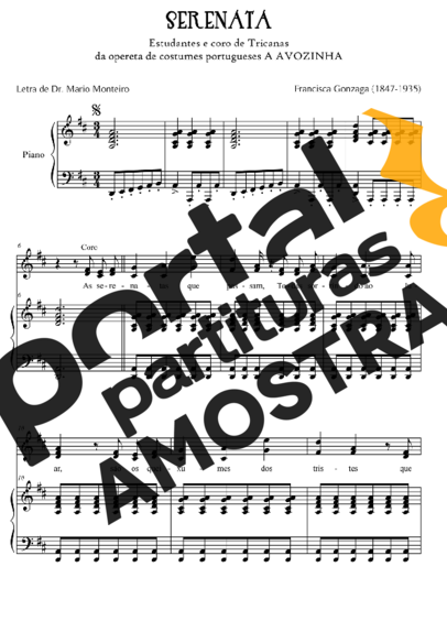 Partitura da música Serenata (A Vovozinha) de Chiquinha Gonzaga transcrita especialmente para Piano em formato PDF.