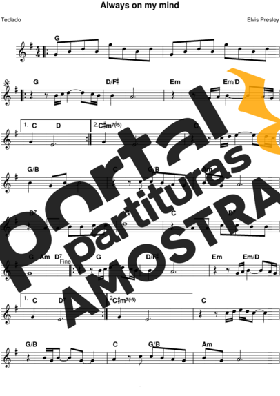 Partitura da música Always On My Mind de Elvis Presley transcrita especialmente para Teclado em formato PDF.